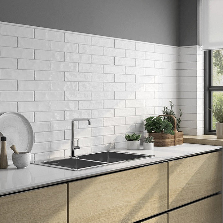 Elevate your home with Pris Shiny White 7.5x30 cm tiles. The small format, trendy white color and white-body material will add brightness and character to your bathroom or kitchen. Make your space feel fresh and modern with this popular Small collection from Prissmacer.
