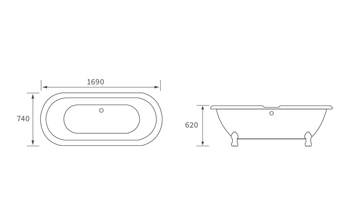Septimus Freestanding 1690x740x620mm 2TH Bath w/Feet