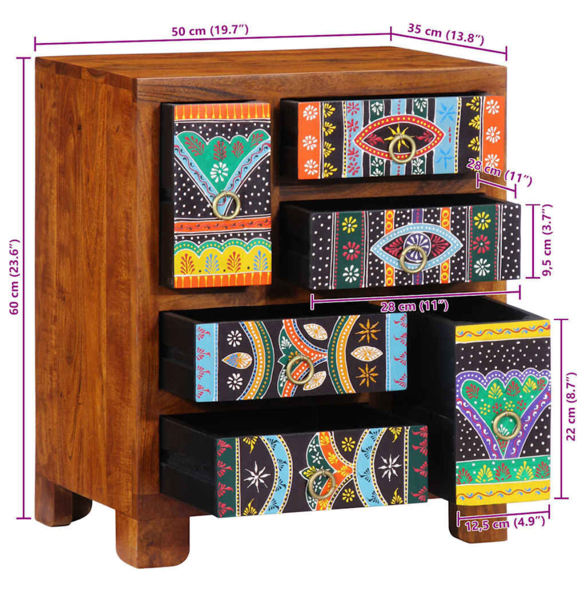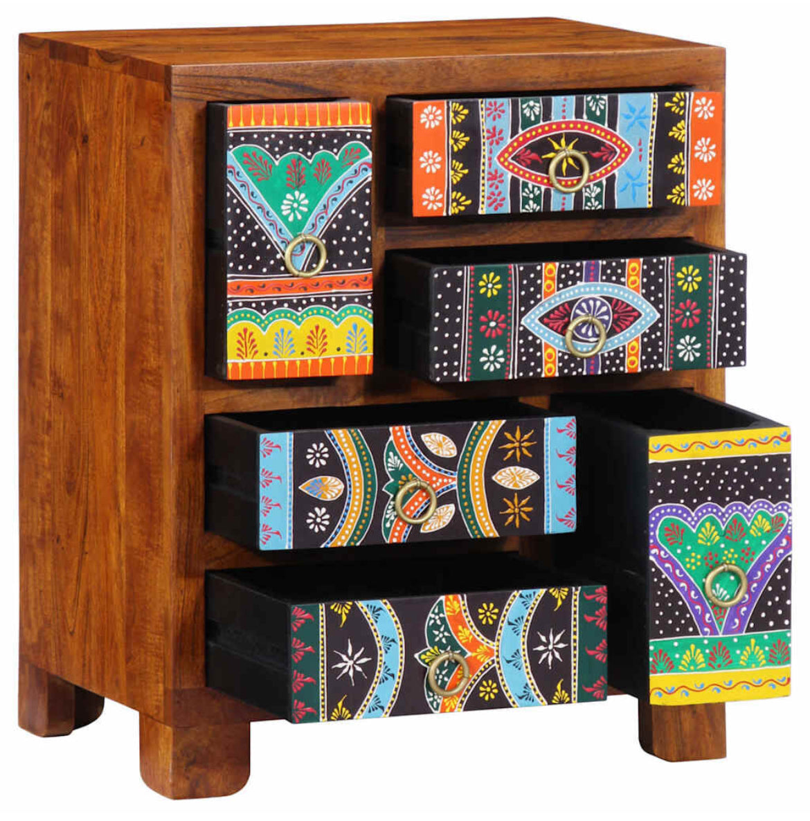 This sideboard features a vibrant hand-painted design, bringing a bold, artistic touch to your interior while offering ample storage space for dining essentials, household items, or personal belongings. Versatile in use, it can serve as a bathroom cabinet, kitchen cupboard, or a stylish storage solution in bedrooms, entryways, dining areas, and offices—effortlessly blending decorative elegance with everyday utility.
